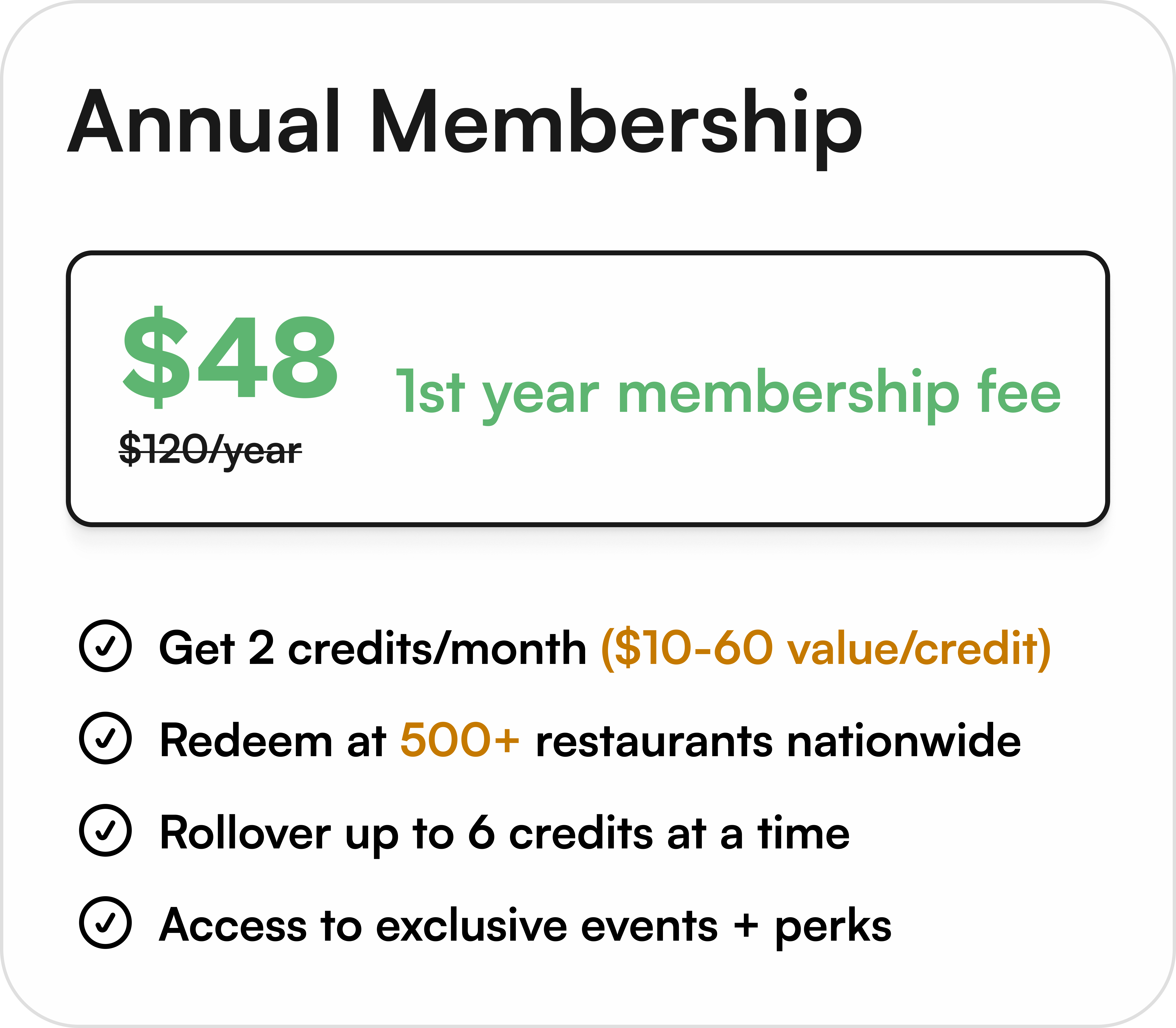 Membership is $48 for your first year. No hidden fees. Just amazing restaurant savings to make the most of patio-worthy weather.